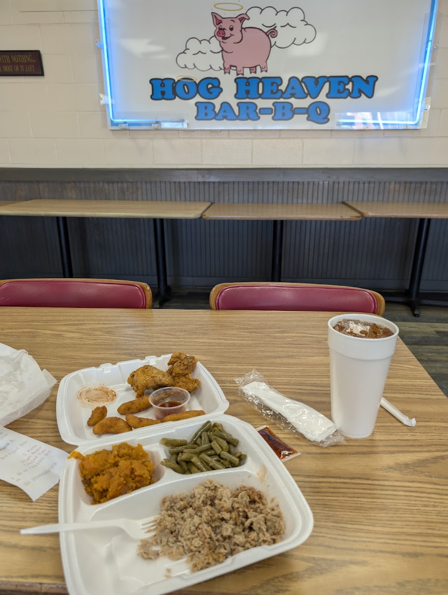 Hog Heaven Bar-B-Q exudes the easygoing spirit of a laid-back neighborhood joint where the focus is on familiar comforts and honest flavors. Tucked away on Guess Road in Durham, the moment you step inside, you’re met with a steady rhythm of friendly chatter and the inviting aroma of smoke and spices. The dining room, reminiscent of a well-loved community gathering spot, fills quickly but never feels rushed—there’s a steady, welcoming pace that encourages settling in and savoring the experience.