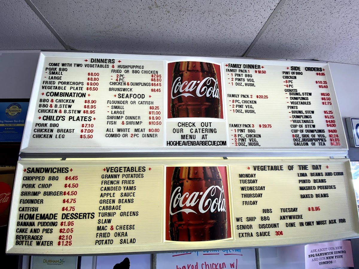 The menu at Hog Heaven Bar-B-Q presents a straightforward, comforting selection of classic Southern barbecue and hearty sides. This is the kind of place where casual lunches and relaxed dinners invite guests to enjoy satisfying plates that feel familiar and welcoming. Expect a range of options from pulled pork plates and fried okra to fish and shrimp meals, each paired with traditional sides like turnip greens, mac and cheese, or cabbage.